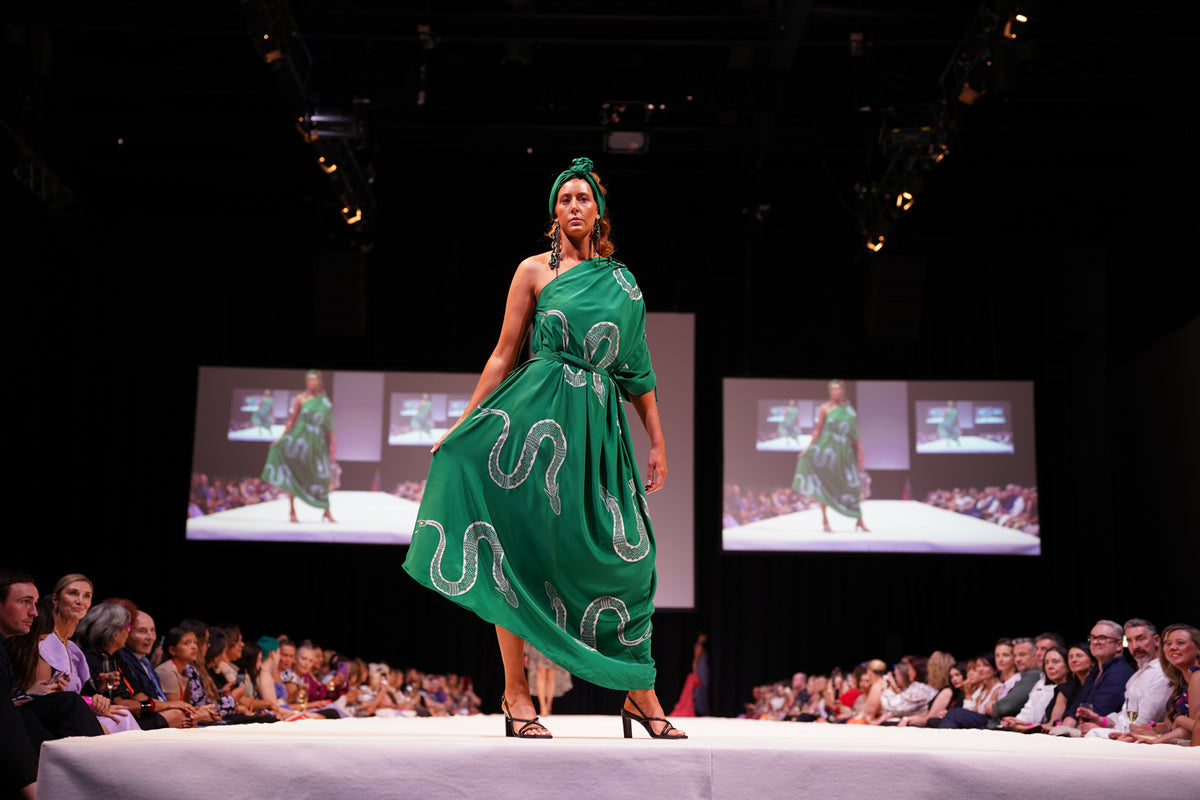 "FLOW!" features two exclusive designs created specifically for this collection. "Ampitji Rainbow Serpent" by Alan Kerinauia and "Ampitji Rainbow Serpent" by Arnold Tipiloura are breathtaking additions that seamlessly blend traditional symbolism with contemporary flair. These designs, born in 2023, evoke a sense of wonder and awe, embodying the ongoing cultural legacy of the Tiwi community.
