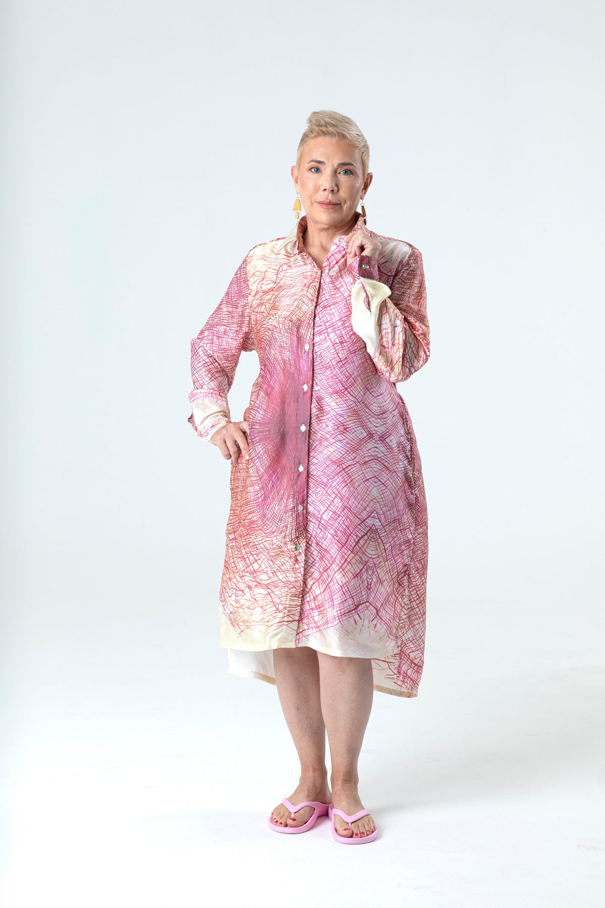 The classic yet modern cut of the shirt dress makes it a timeless staple of your wardrobe. Wear it as a dress with a belt or open as a cardigan paired with a singlet and pants - you will always look stylish! Printed with one of our Veins prints on gorgeous silk charmeuse: Croton, Bromeliad, Cycad Husk or Eucalyptus this dress is an absolute must-have for summer days!